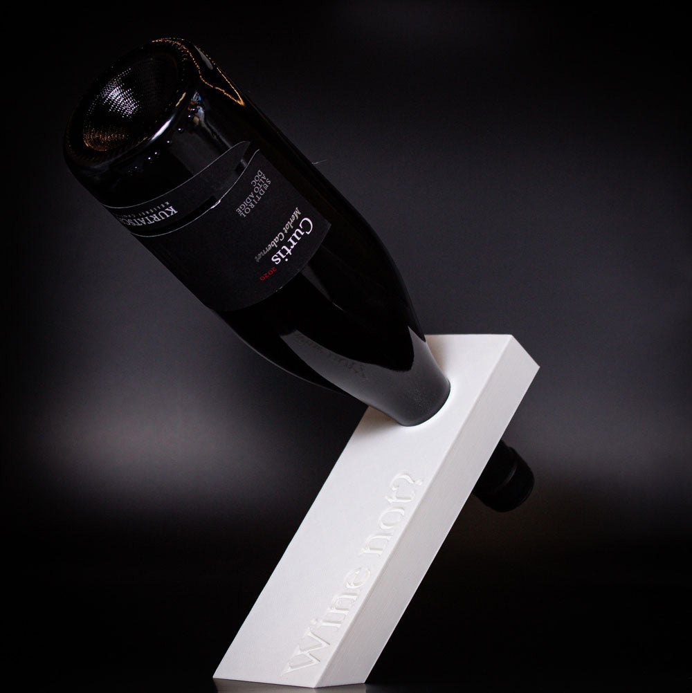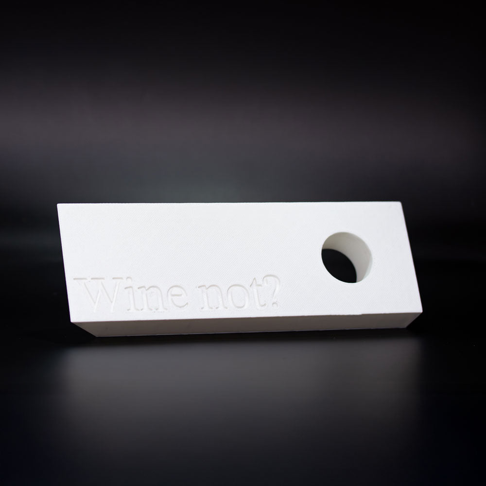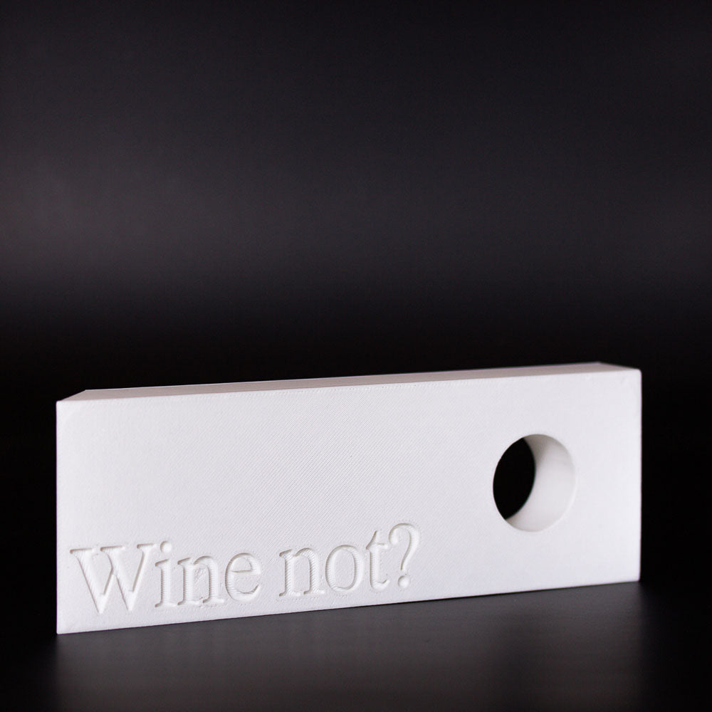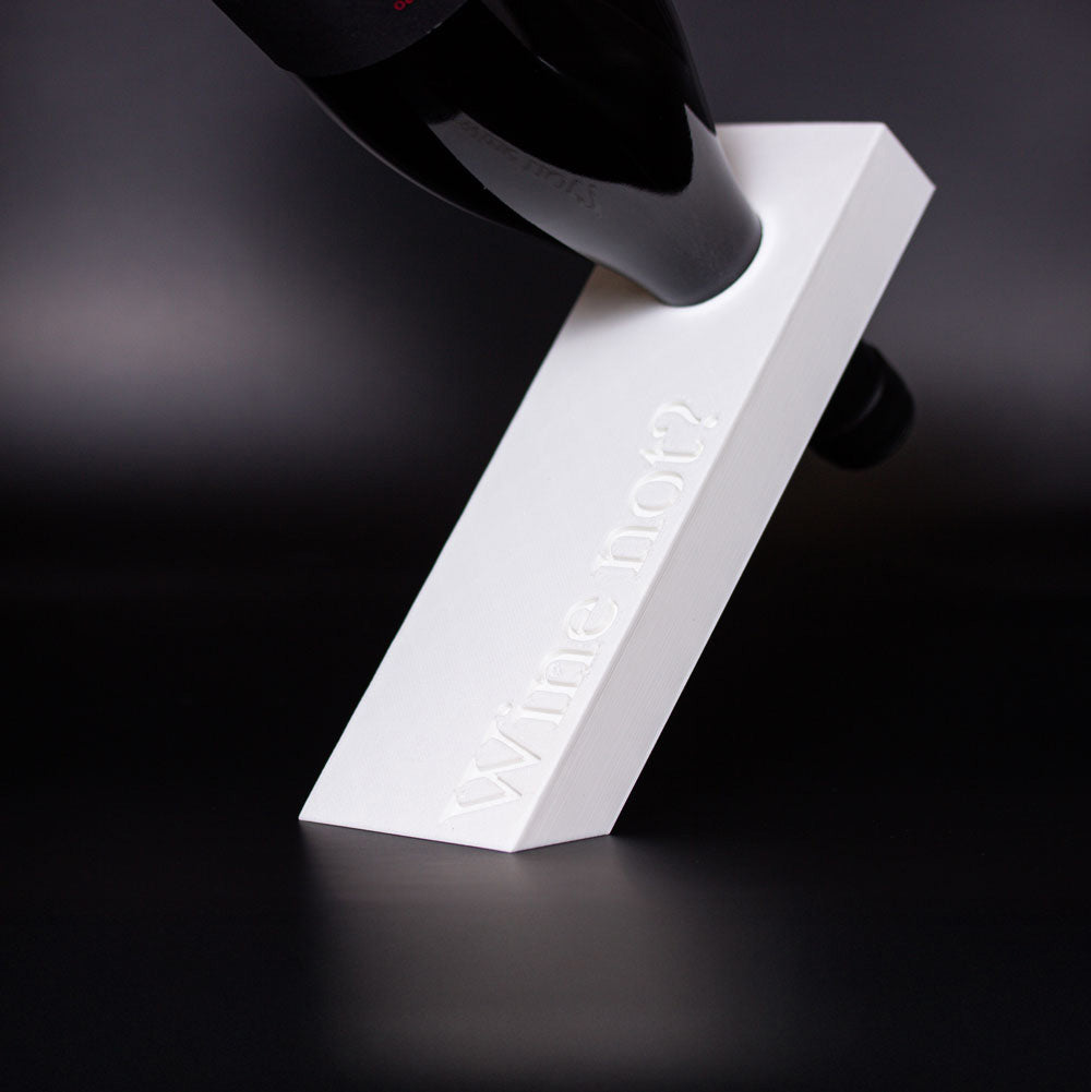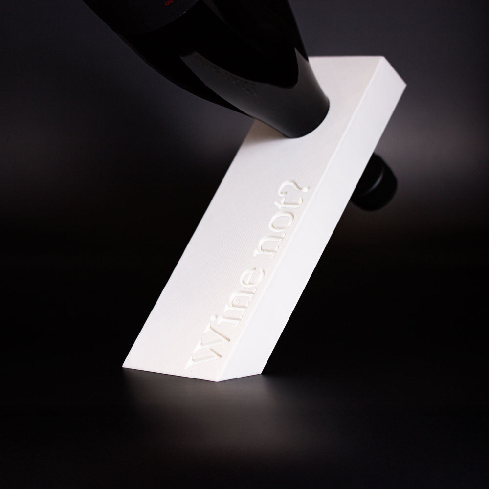 Gedruckt aus biobasiertem PLA, mit kantigem Format und purer Präsenz. Passt zu gedeckten Tafeln, Designregalen und Menschen mit Sinn für guten Wein und gutes Design. Du hast die Flasche – wir sorgen für die Haltung.