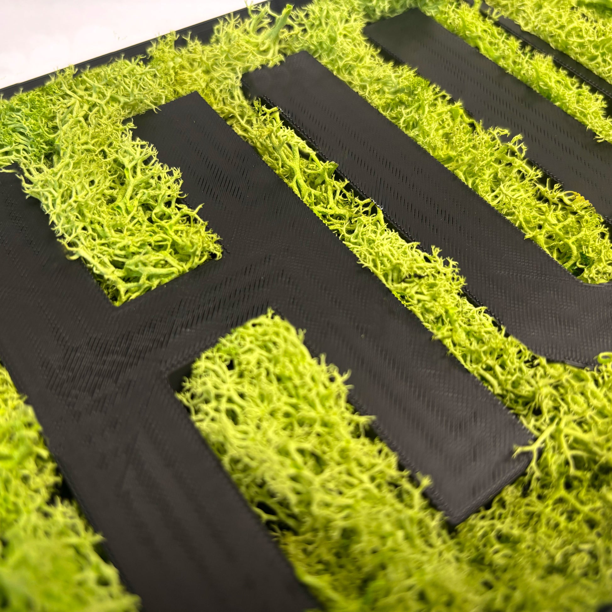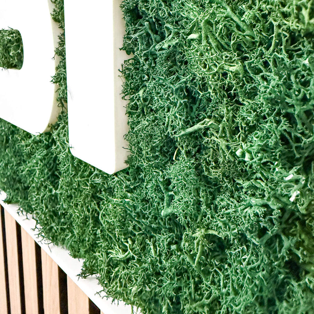 Was den Unterschied macht, passiert danach: Echtes, konserviertes Islandmoos wird von Hand vorbereitet, eingesetzt und verklebt. Jedes Stück einzeln. Das Moos ist pflegefrei, langlebig und farbstabil. Es sieht natürlich aus, bleibt dauerhaft schön und braucht keine Aufmerksamkeit. Kein Gießen, kein Nachjustieren, kein Aufwand.