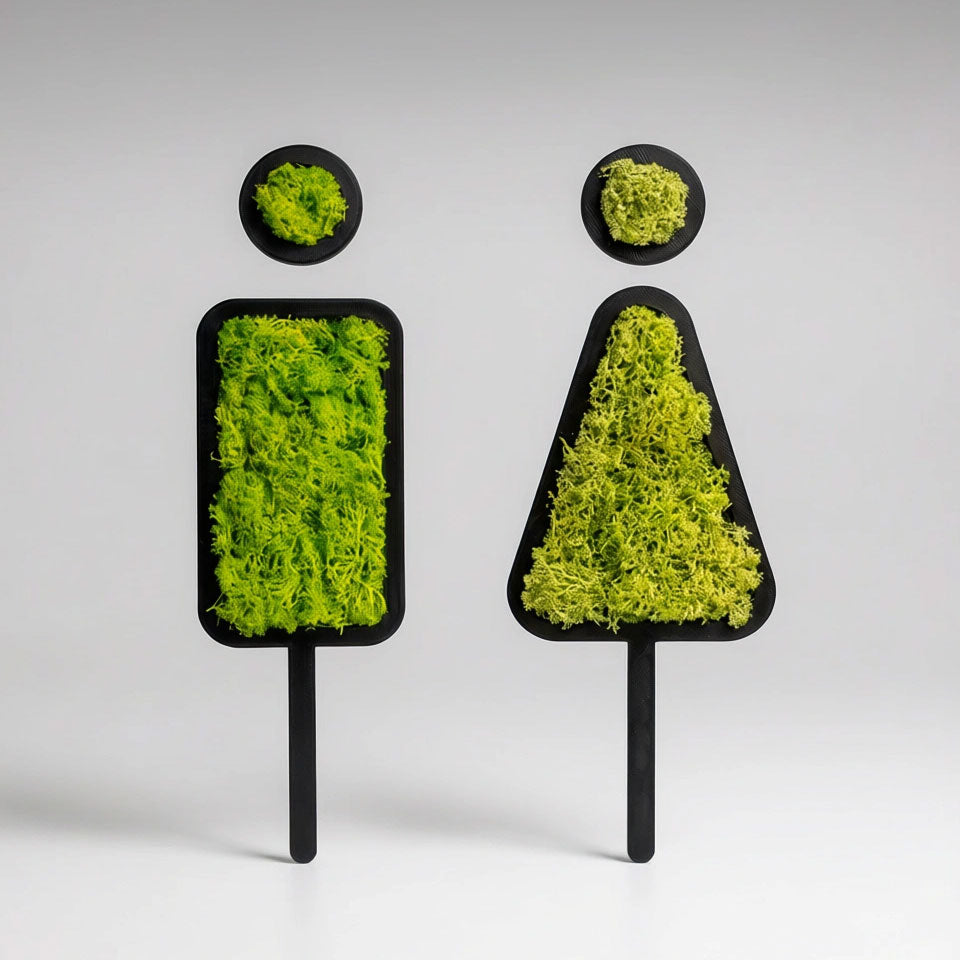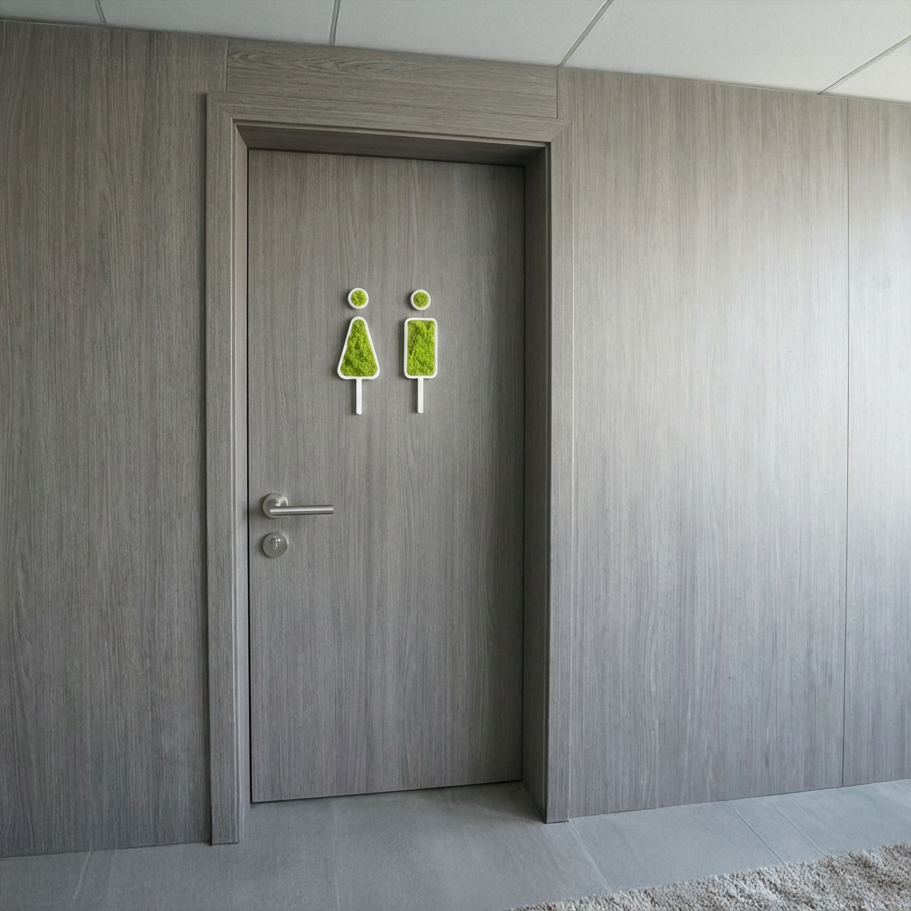 Der WC-Wegweiser aus echtem Islandmoos hängt dort, wo man ihn braucht – und wird sofort verstanden. Ein kurzer Blick reicht, ein Schmunzeln gibt’s gratis dazu. Funktion vor Deko, Humor ohne Klamauk.